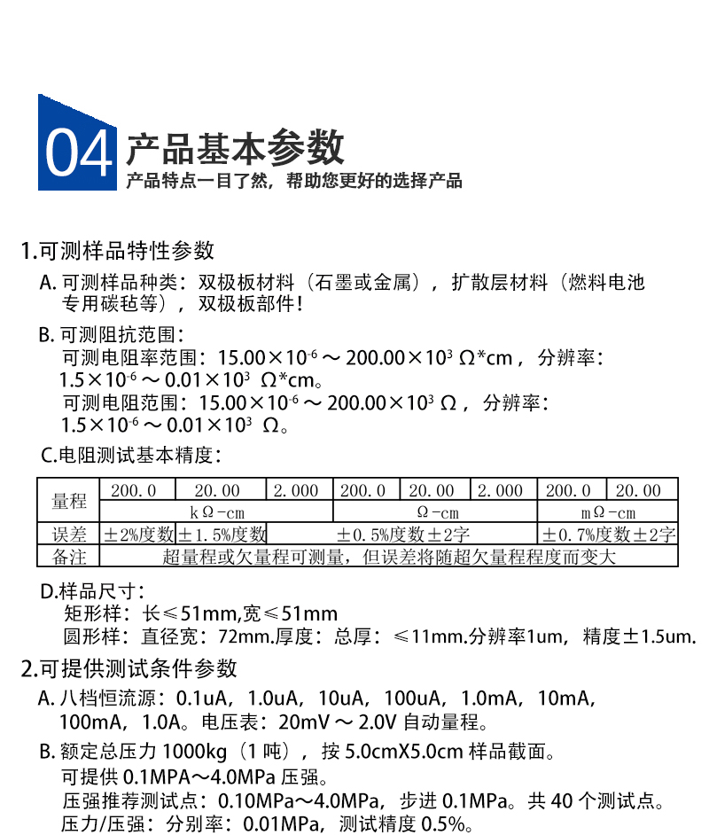 产品名称:高精度双极板体积电阻率测试仪 全钒液流燃料电池测试必备仪器
