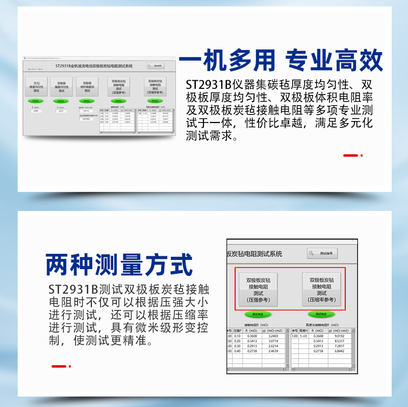 ST2931B型双极板碳毡接触电阻测试仪,可以测试0.1MPa到