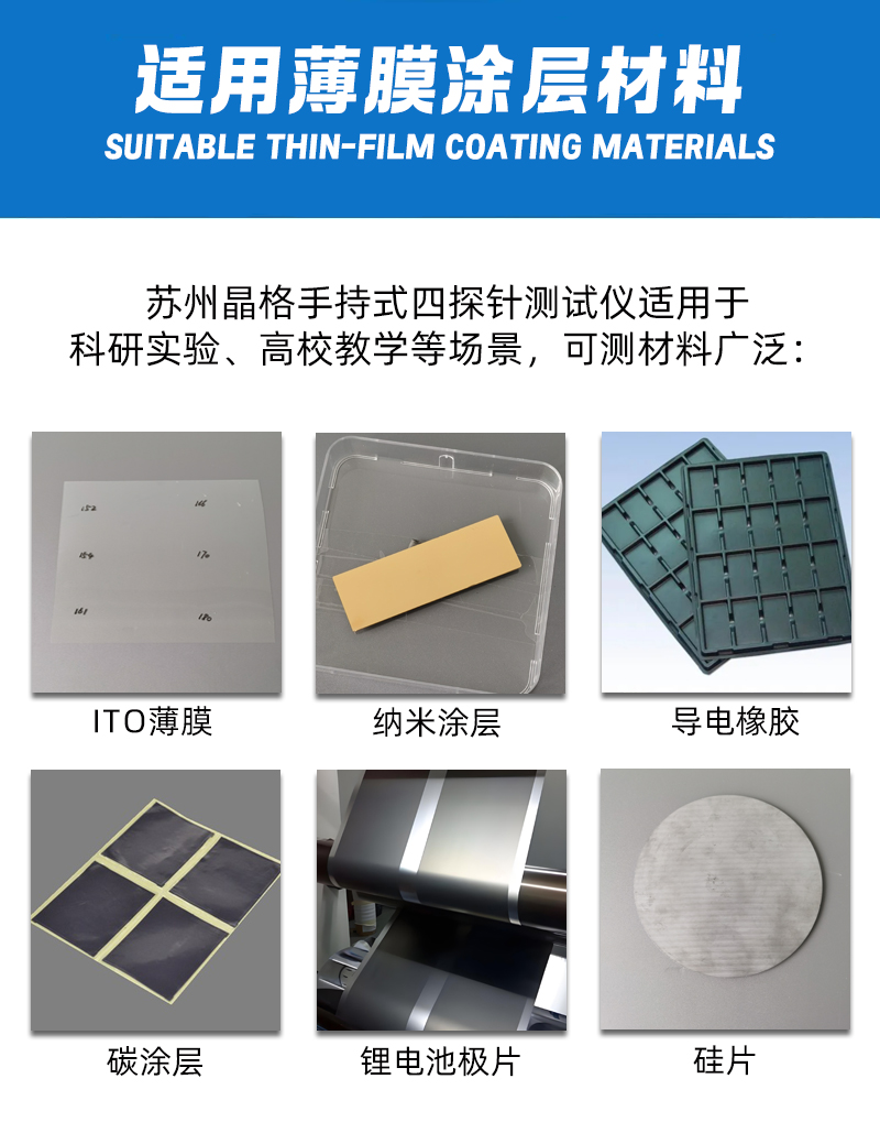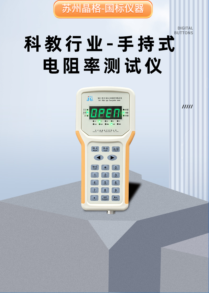 晶格M-3型科研教育行业手持式四探针电阻率测试仪,适用于高校、科研机构及教学实验材料导电性能检测,符合国标,精度高达0.5%,具备5档电流量程,测量稳定可靠。仪器小巧便携,内置锂电池,支持现场教学与实验快速测试。苏州晶格作为国标制定单位之一,品质保障,提供免费测样、现货直发及终身售后!苏州晶格科研教育行业手持式四探针电阻率测试仪源头厂家批发包邮价
