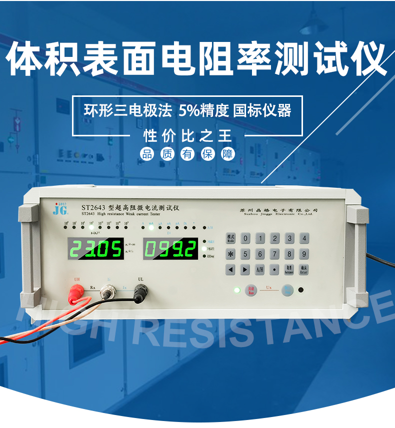 晶格ST2643体积电阻率测试仪,采用环形三电极法,支持体积与表面电阻率精准测量,精度达5%,电压量程10-1000V,最高可测10的12次方,符合国标要求,是国产替代的优秀产品。仪器适用于绝缘材料、塑料、橡胶等多领域检测。源头厂家直供,支持免费测样,现货直发,终身售后保障,品质有保障!苏州晶格高精度体积表面电阻率测试仪源头厂家顺丰包邮