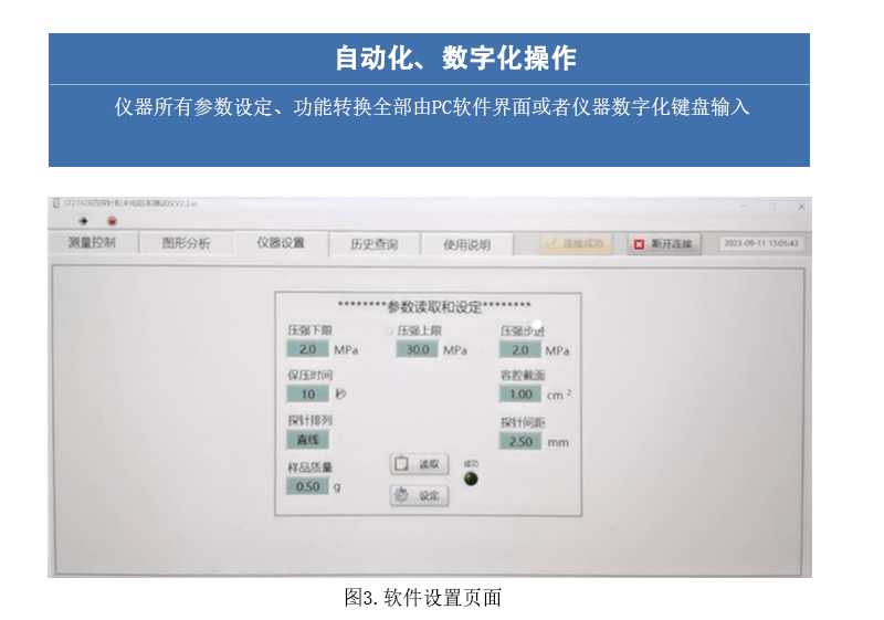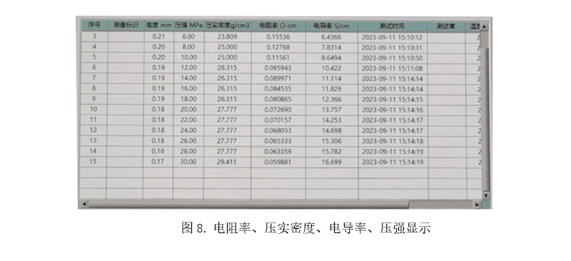 一次装料,电阻率、压强、高度同步式连续多点测试,自动绘制粉末“电阻率-压强”曲线,