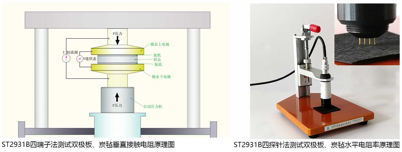 In a system, the four probe method completes horizontal resistivity testing, while the four terminal method completes vertical resistance, resistivity, and contact resistance testing.