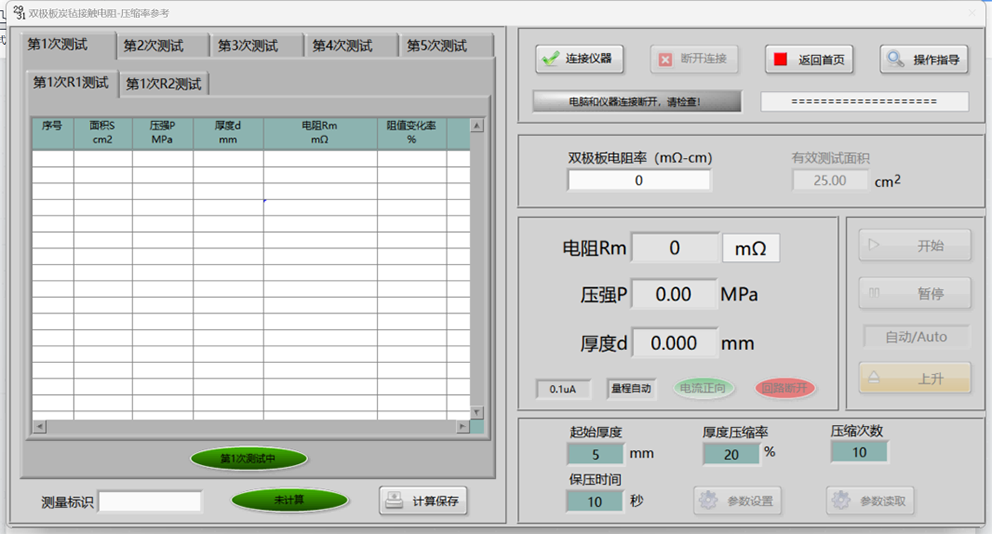 ST2931B Four Terminal Method for Testing the Vertical Contact Resistivity of Double Stage Board and Carbon Felt PC Software Interface - Compression Ratio Reference