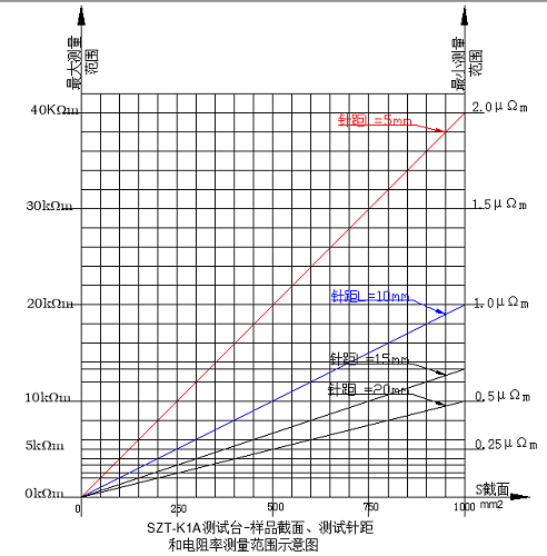 The range of sample resistivity testing is related to its cross-sectional area and testing needle distance. Taking cross-sectional area S=250mm2 and needle distance L=5mm as an example: