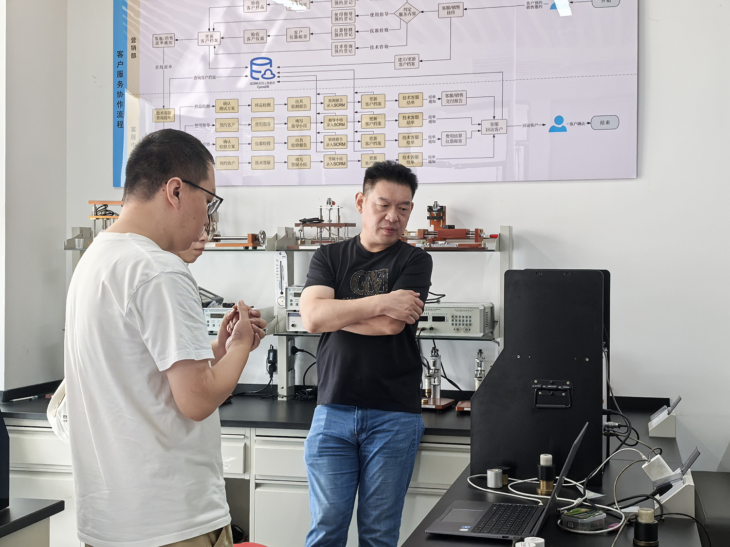 悉骋新材的技术人员携带着最新研发的银包玻璃粉末和银包树脂粉末,来到了苏州晶格,希望用我们的粉末电阻率测试仪来测试这些新型粉末的导电性能。