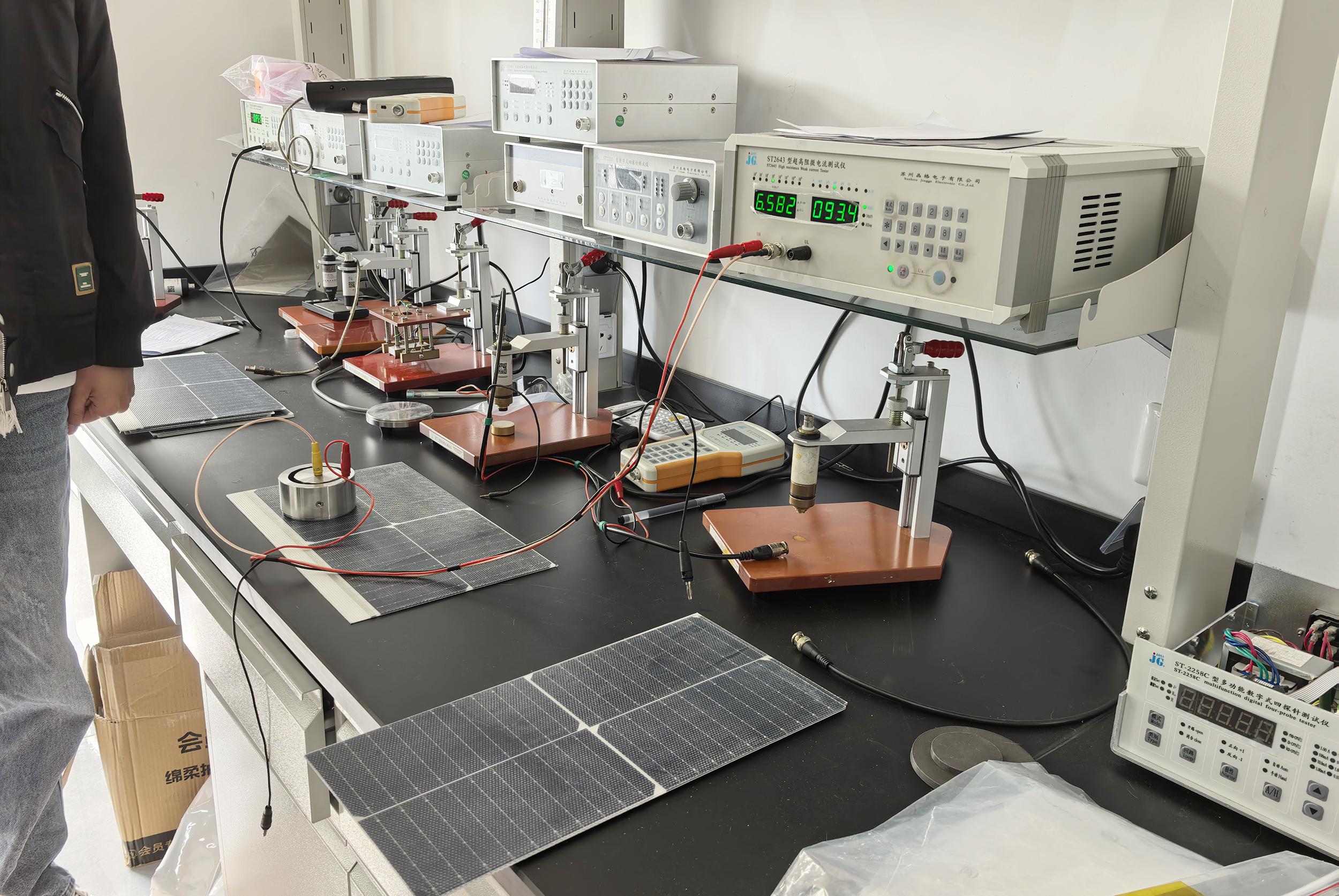 为了验证太阳能电池板防静电涂层的实际效果,一家国内龙头光伏企业的技术人员携其最新研发成果来到了我公司。他们带来了三种不同的样品:1号样品为未涂覆防静电涂层的光伏电池板,2号样品为涂覆有一层防静电涂层的光伏电池板,3号样品则为涂覆有两层防静电涂层的光伏电池板。我们的技术人员王工采用先进的ST2643表面电阻测试仪对这些样品的表面电阻进行了严格的测试,以评估涂层的防静电性能。