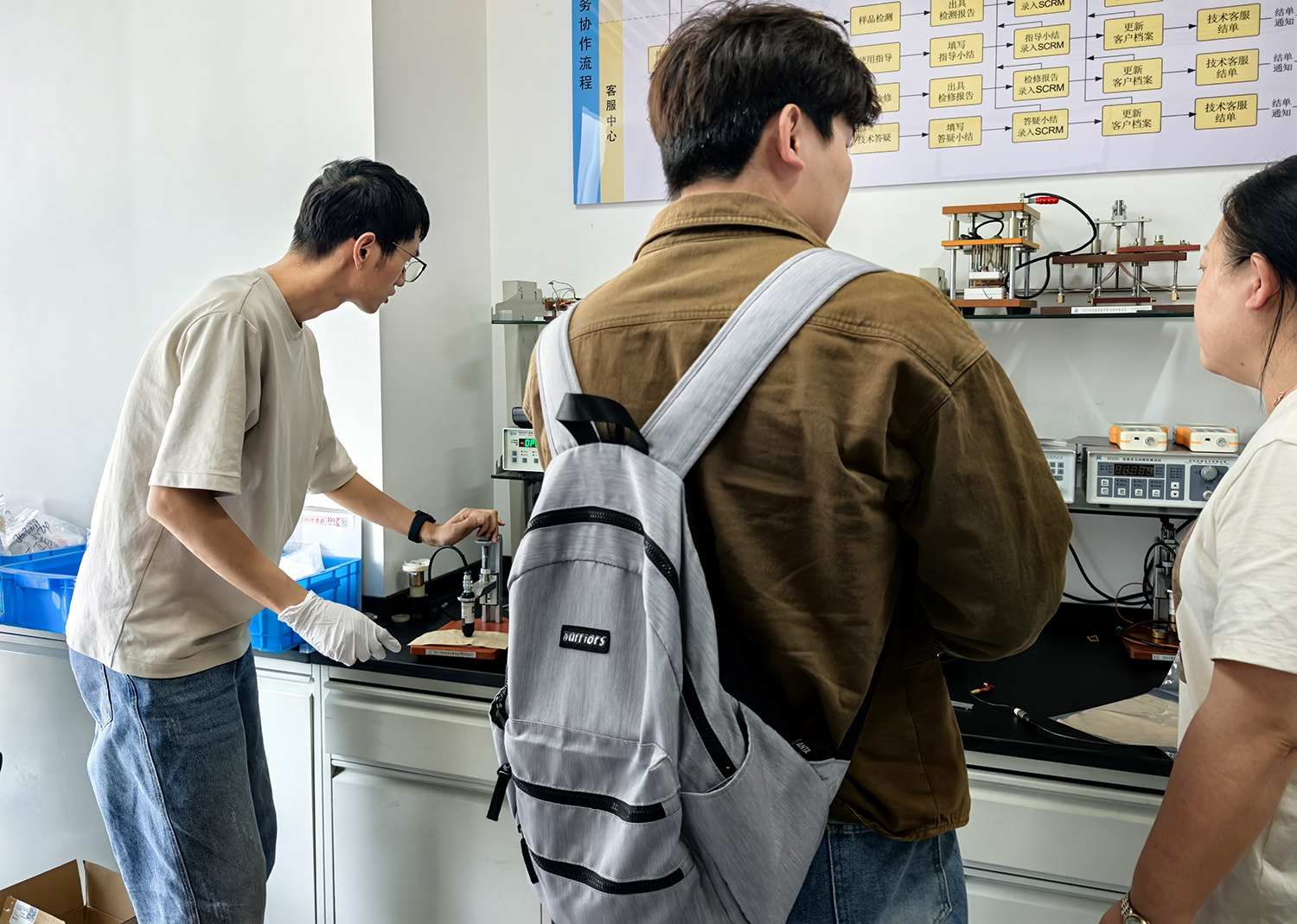 5月26日,四川高精智通检测技术有限公司技术人员携带导电橡胶样品赴苏州晶格进行技术合作,针对传统四探针法无法检测超低阻值材料的行业痛点,苏州晶格技术团队创新采用ST2921B质子交换膜燃料电池双极板碳纸电阻测试仪,通过加压测试技术成功获取精准数据,为新型导电材料的研发与应用开辟了检测新路径。