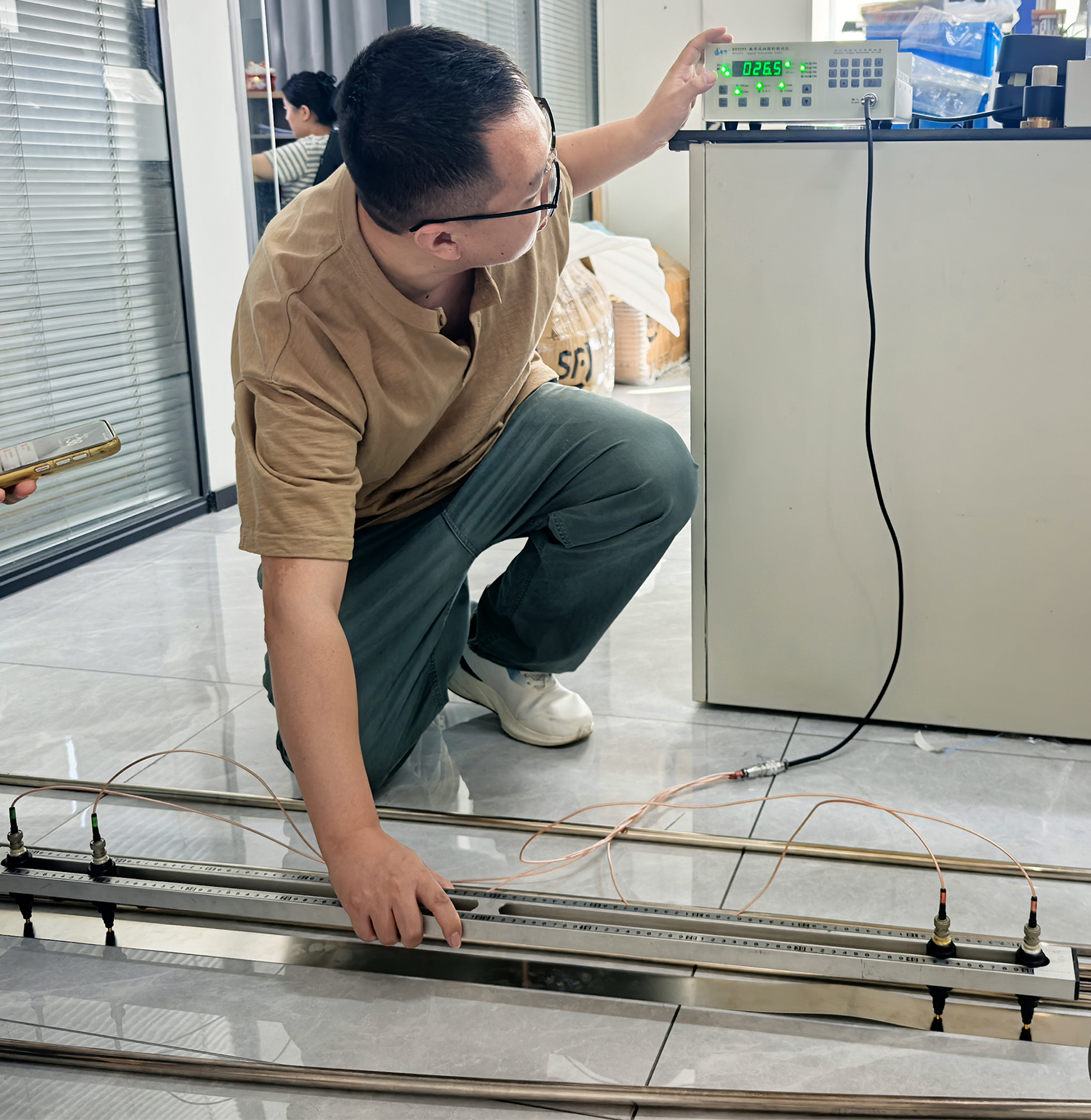 嘉兴弈迈机电科技有限公司的技术人员表示,合金铜棒和铁镀锌棒的电阻率测试一直是生产过程中的难点。由于材料形状特殊(长条状、棒状、长条片状),多数常见仪器无法满足测试要求。据他们说,这段时间他们已经找了多家厂商和测试机构,都没有找到合适的能准确测量这些棒材的仪器,最终机缘巧合,在网上搜索到苏州晶格,知道我们是一家专门做材料电阻率测试仪器的厂家,随即决定过来苏州进行实地测试。