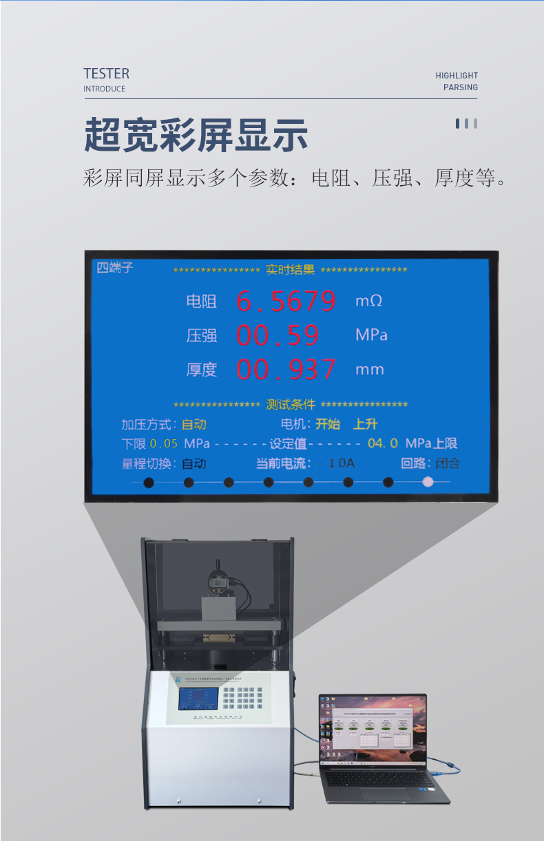 ST2931B型根据行业标准《全钒液流电池 电极测试方法》,在进行双极板碳毡接触电阻测试时,将原来的压强参考改为压缩率参考,这种参考模式更符合碳毡的物理特性。全钒液流燃料电池双极板碳毡接触电阻测试仪(压缩率参考)源厂