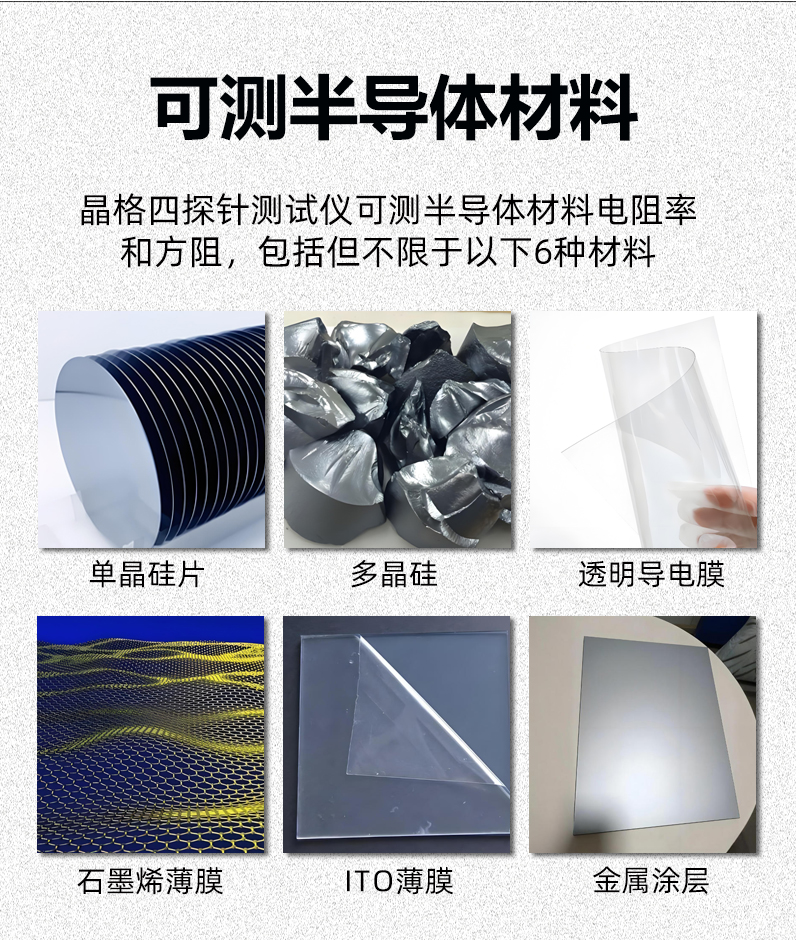 晶格品牌半导体电阻率方阻测试仪,源头厂家直供,专业用于半导体材料的电阻率与方阻精确测量。产品涵盖多种型号,适用于实验室、生产线等多种场景,满足不同测试需求。仪器设计精密,操作简便,配备清晰显示屏与多功能按键,确保测量数据准确可靠。支持免费测样服务,现货直发,提供终身售后保障,全方位解决客户在半导体检测中的技术难题。无论是科研还是工业应用,该系列测试仪均能高效稳定运行,是半导体行业不可或缺的专业检测设备。