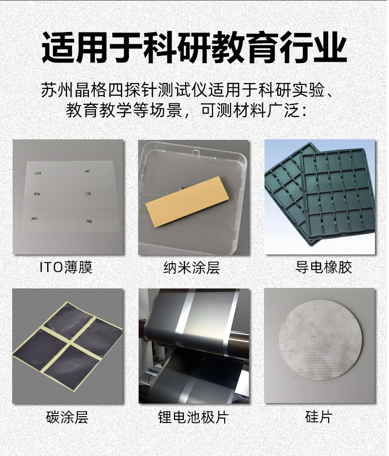 晶格科研级电阻率方阻测试仪,专为高校、科研院所及高端实验室设计,支持高精度材料电性能检测。产品涵盖手持式与台式多型号,量程宽泛,稳定性强,适用于半导体、纳米材料、新型导电膜等前沿研究。源头厂家直供,符合国家标准,支持免费测样,现货直发,终身售后保障,全面满足科研级测试需求。苏州晶格科教行业四探针电阻率方阻测试仪源头厂家批发