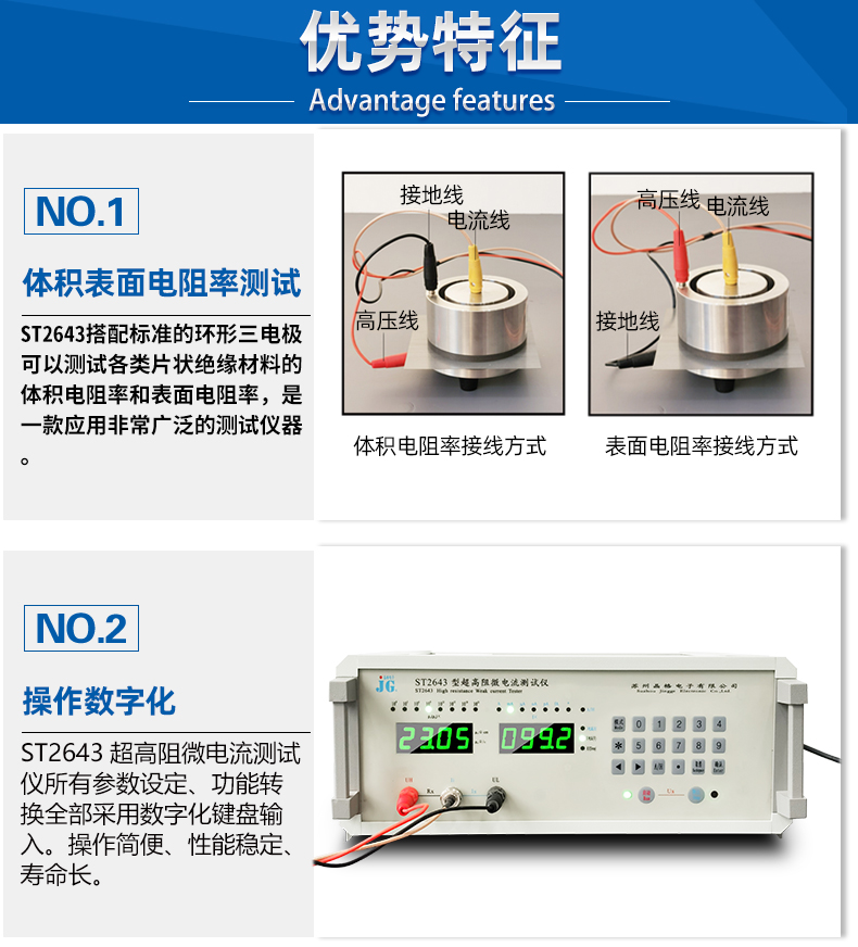晶格ST2643体积电阻率测试仪,采用环形三电极法,支持体积与表面电阻率精准测量,精度达5%,电压量程10-1000V,最高可测10的12次方,符合国标要求,是国产替代的优秀产品。仪器适用于绝缘材料、塑料、橡胶等多领域检测。源头厂家直供,支持免费测样,现货直发,终身售后保障,品质有保障!苏州晶格高精度体积表面电阻率测试仪源头厂家顺丰包邮