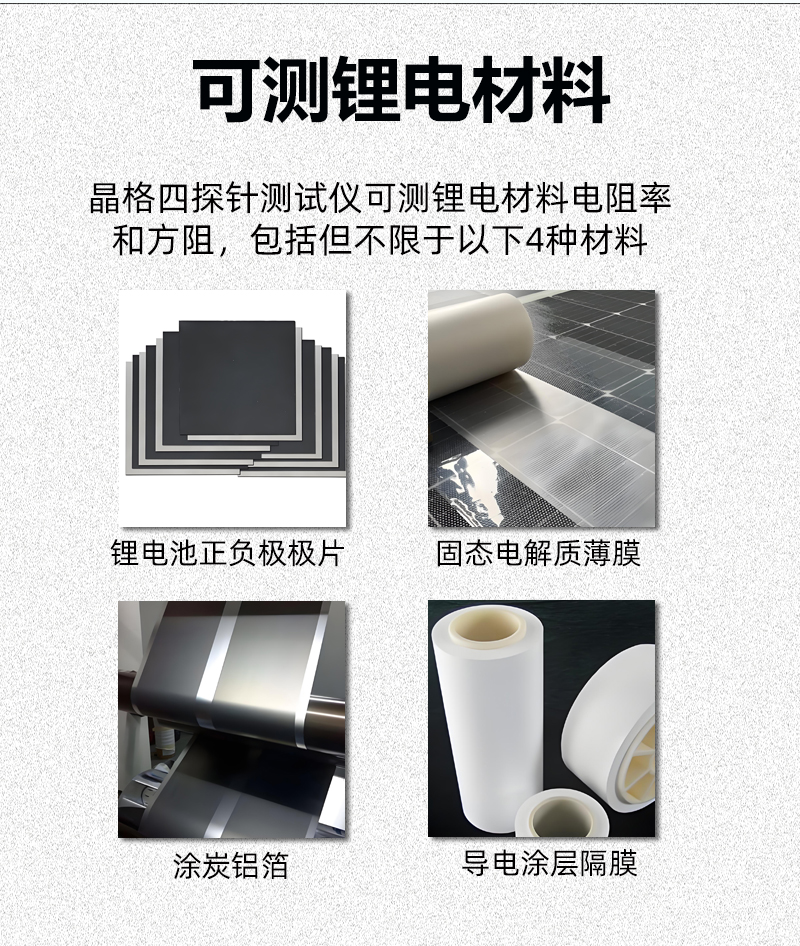 产品名称:苏州晶格四探针电阻率方阻测试仪高精度带软件适合锂电行业源头厂家