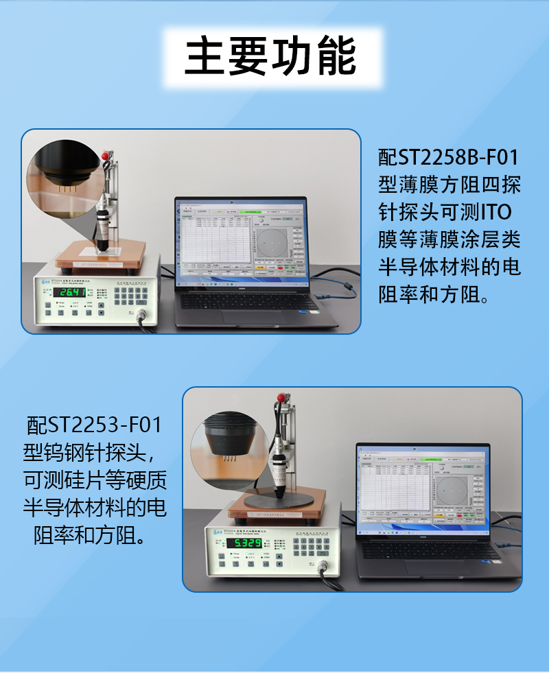 晶格ST2253A薄膜涂层方阻测试仪,高精度带软件,采用四探针法,可测各类薄膜涂层的方阻,测试稳定可靠。仪器含有配套软件,支持数据采集、保存、打印、分析等功能,操作简单,适用于材料研发公司和科研院所。源头厂家直供,符合国家标准,支持免费测样,现货直发,终身售后保障,品质值得信赖。苏州晶格四探针法薄膜涂层方阻测试仪高精度带软件源头厂家顺丰包邮