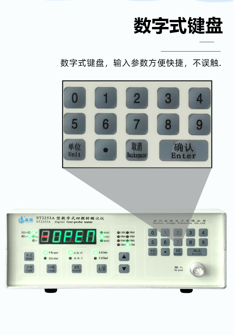 产品名称:苏州晶格ST2253A带软件四探针法电阻率测试仪科研教学用源头厂家