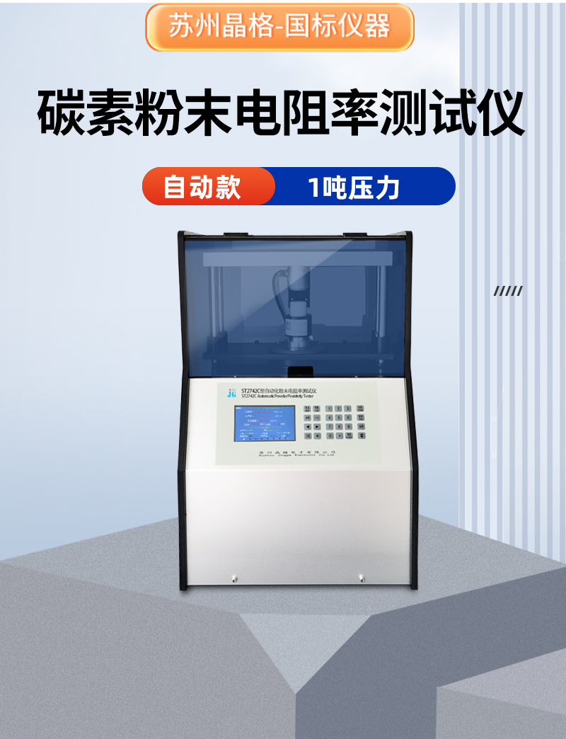 苏州晶格ST2742C碳素粉末电阻率测试仪,可测各种碳素粉末的电阻率和压实密度,升级款1吨压力,全自动加压,0.5%测试精度,8档电流量程,精准度好,重复性好,稳定性好,苏州晶格还是国标制定单位之一,技术实力雄厚,仪器保证质量。苏州晶格1吨压力碳素粉末电阻率测试仪全自动加压带软件符合国标