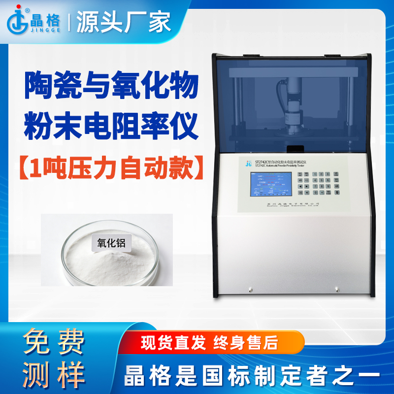 苏州晶格ST2742C陶瓷与氧化物粉末电阻率测试仪,可测各种陶瓷类、氧化物类粉末的电阻率和压实密度,升级款1吨压力,全自动加压,0.5%测试精度,8档电流量程,精准度好,重复性好,稳定性好,苏州晶格还是国标制定单位之一,技术实力雄厚,仪器保证质量。苏州晶格陶瓷与氧化物粉末电阻率测试仪1吨压力全自动加压0.5%精度厂家直销