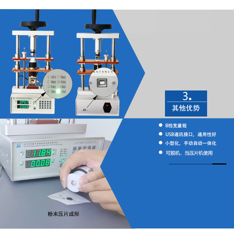 苏州晶格ST2722粉末电阻率测试仪也可独立当作普通粉末压片机用,