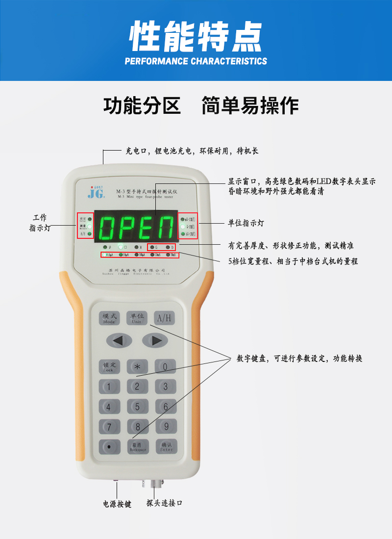 产品名称:苏州晶格M-3手持式四探针电阻率测试仪 方块电阻测试仪 美观易用 性价比高 源头厂家 品质保证