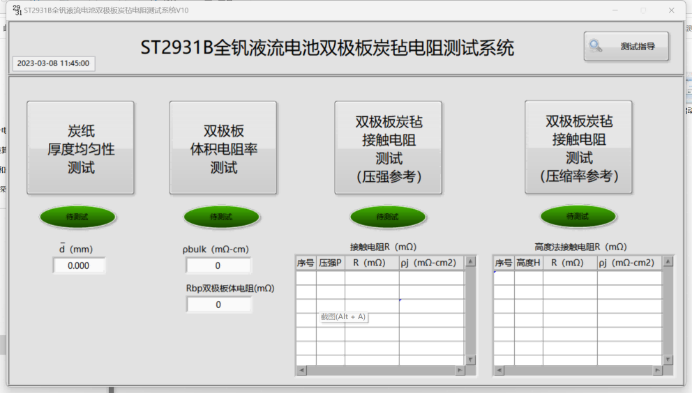 ST2931B All Vanadium Flow Battery Dual Stage Plate and Carbon Felt Resistance Test System PC Software Interface - Home Page