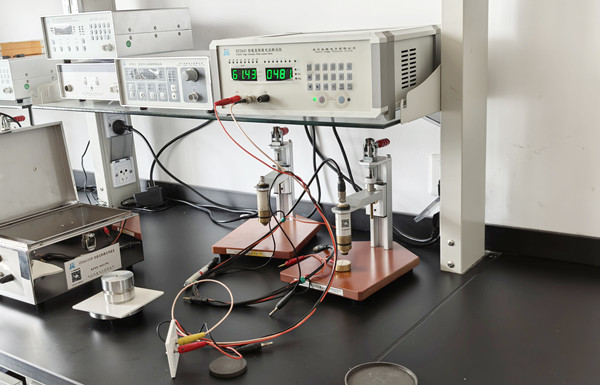 仪器配备标准环形三电极,适用于一般片状、薄膜状的样品,在这次过程中也有用到标准环形三电极测试片状陶瓷片。但是客户这次带来的样品大多数是中间打孔的陶瓷片,所以吴工在给客户测试时根据国标《GB/T 10064-1988测定固体绝缘材料绝缘电阻的试验方法》,采用直径约5mm带有约2%锥度的干净黄铜圆锥形插销电极插入样品上两个小孔测试。测试结果显示,该陶瓷制品在电阻率方面表现出色,符合客户预期。
