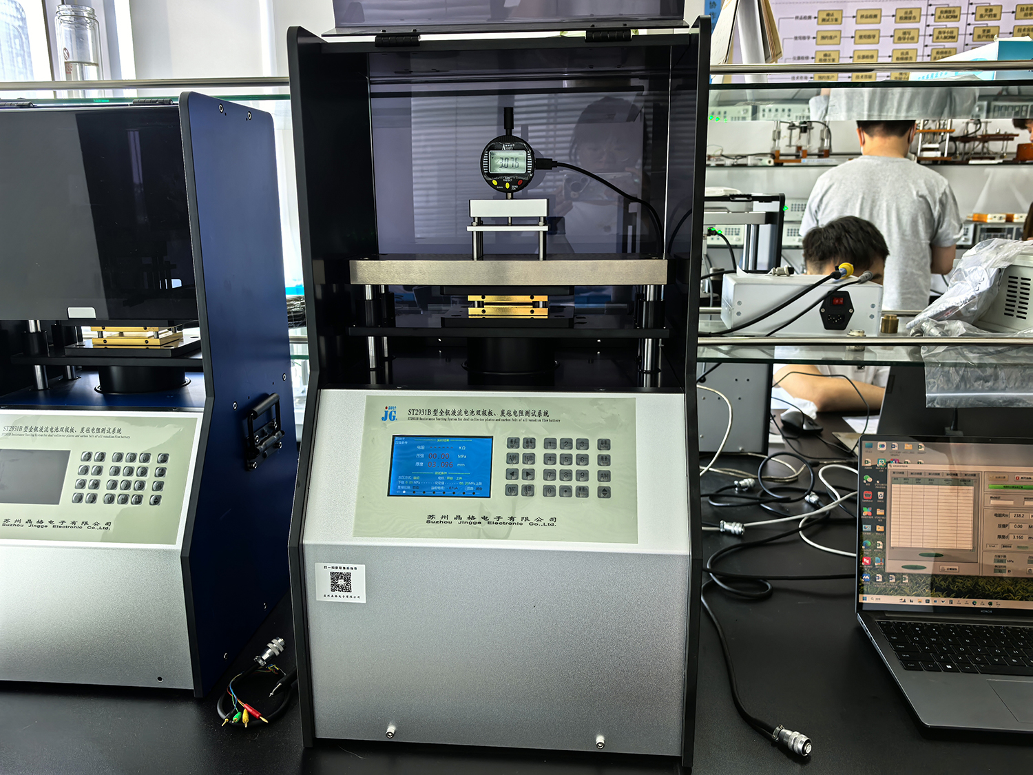 5月26日,四川高精智通检测技术有限公司技术人员携带导电橡胶样品赴苏州晶格进行技术合作,针对传统四探针法无法检测超低阻值材料的行业痛点,苏州晶格技术团队创新采用ST2921B质子交换膜燃料电池双极板碳纸电阻测试仪,通过加压测试技术成功获取精准数据,为新型导电材料的研发与应用开辟了检测新路径。