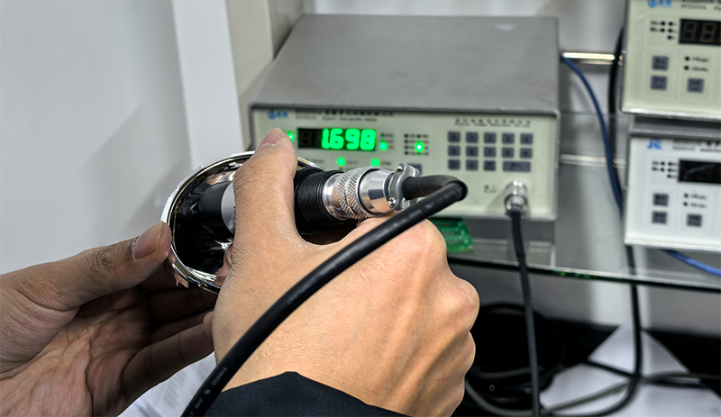 测试过程中,因为样品表面是弧形的,客户担心探针跟铝膜的接触不好,我们的技术人员王工介绍道:“探针是有弹性回弹的,可自由伸缩,可以很好地贴合样品表面,所以不存在接触不好的问题。”客户现场对比多个点位数据,对于测试结果还是比较满意的:“比我们想象中更精准,也更方便。”
