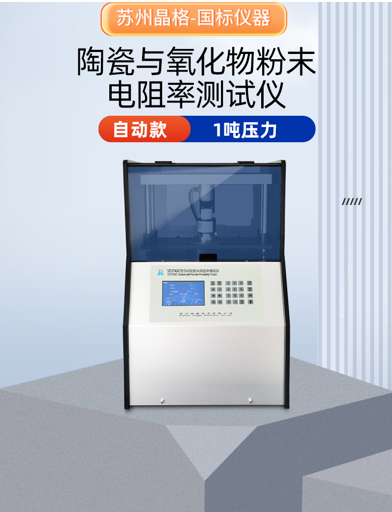 苏州晶格ST2742C陶瓷与氧化物粉末电阻率测试仪,可测各种陶瓷类、氧化物类粉末的电阻率和压实密度,升级款1吨压力,全自动加压,0.5%测试精度,8档电流量程,精准度好,重复性好,稳定性好,苏州晶格还是国标制定单位之一,技术实力雄厚,仪器保证质量。苏州晶格陶瓷与氧化物粉末电阻率测试仪1吨压力全自动加压0.5%精度厂家直销