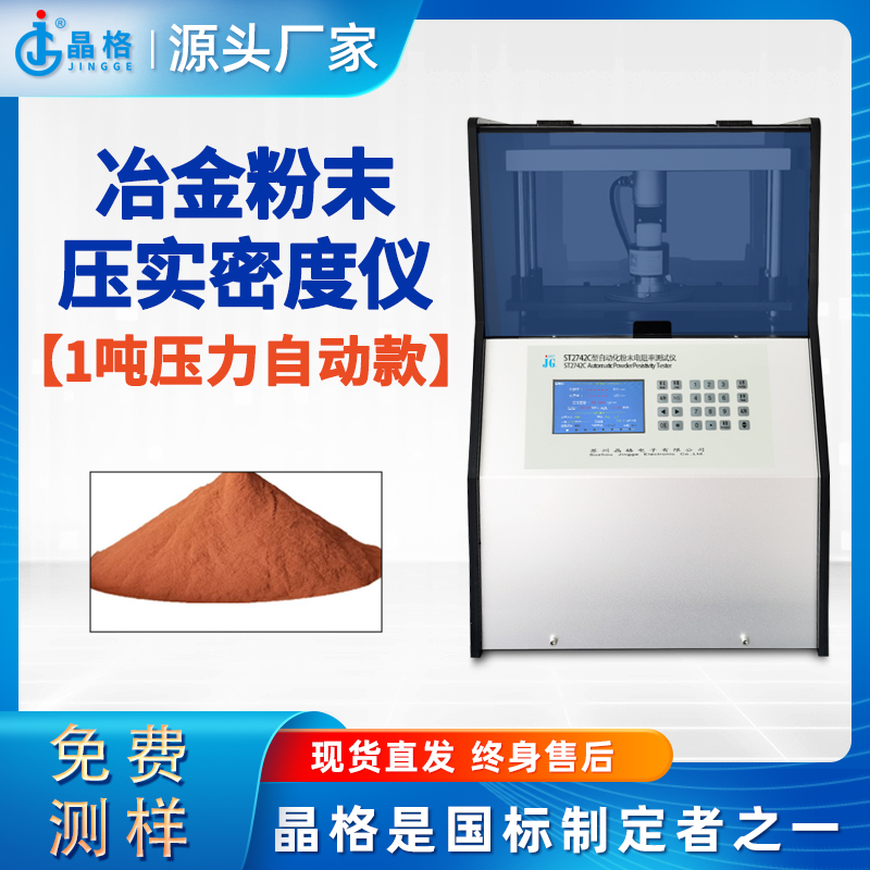苏州晶格ST2742C冶金粉末压实密度测试仪,升级款1吨压力,全自动一边加压一边测试,0.5%测试精度,8档电流量程,精准度好,重复性好,稳定性好,苏州晶格还是国标制定单位之一,技术实力雄厚,仪器保证质量。苏州晶格全自动1吨型冶金粉末压实密度测试仪0.5%精度符合国标源头厂家