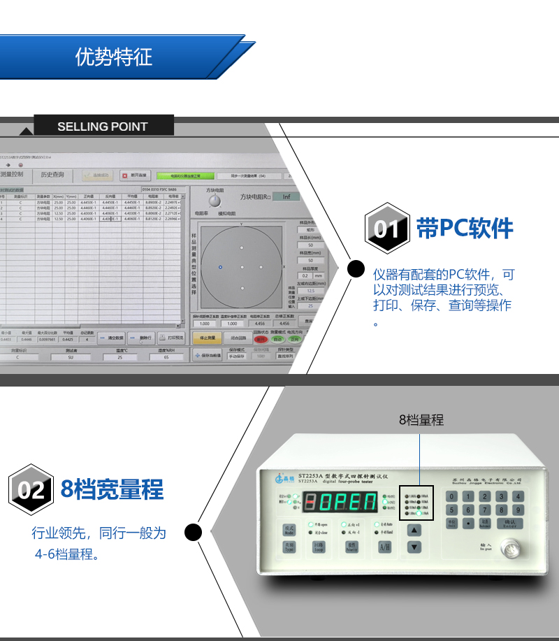 苏州晶格ST2253四探针电阻率测试仪,四探针方阻测试仪,